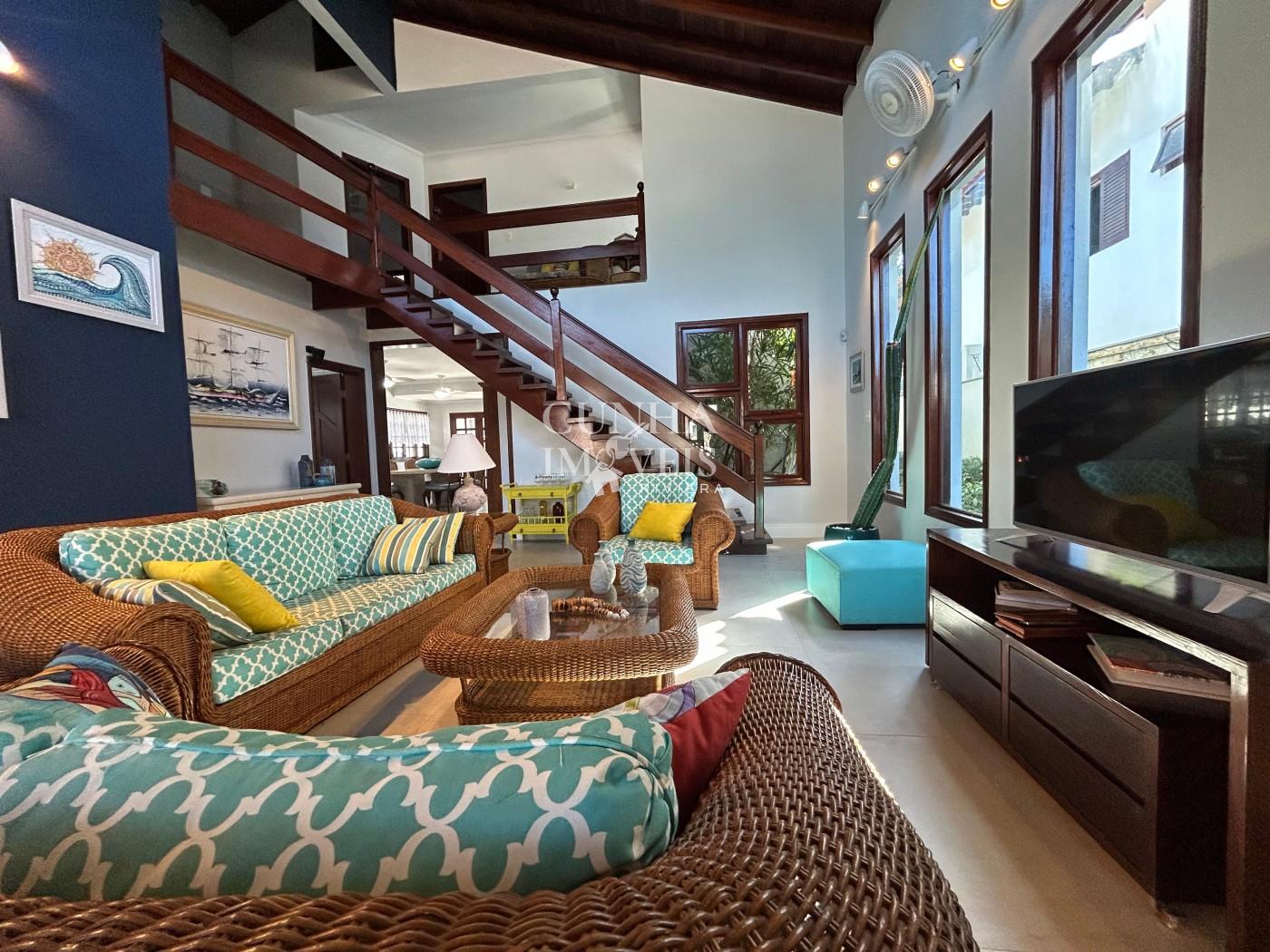 No pavimento inferior, a cozinha é totalmente equipada, o living é amplo e integrado, e há uma suíte que garante conforto e praticidade. No pavimento superior, o mezanino dá acesso a três suítes bem iluminadas e ventiladas, todas pensadas para proporcionar o máximo de conforto durante a estadia.